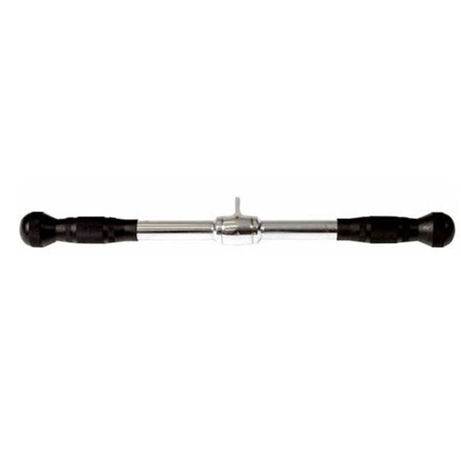 This is a multi-purpose 20″ bar with a swivel and rubber grips. The swivel provides a smooth movement and the contoured rubber grips provide better comfort and feel. Can be used for biceps, triceps, rows, pulldowns, etc. Weighs 7 pounds.